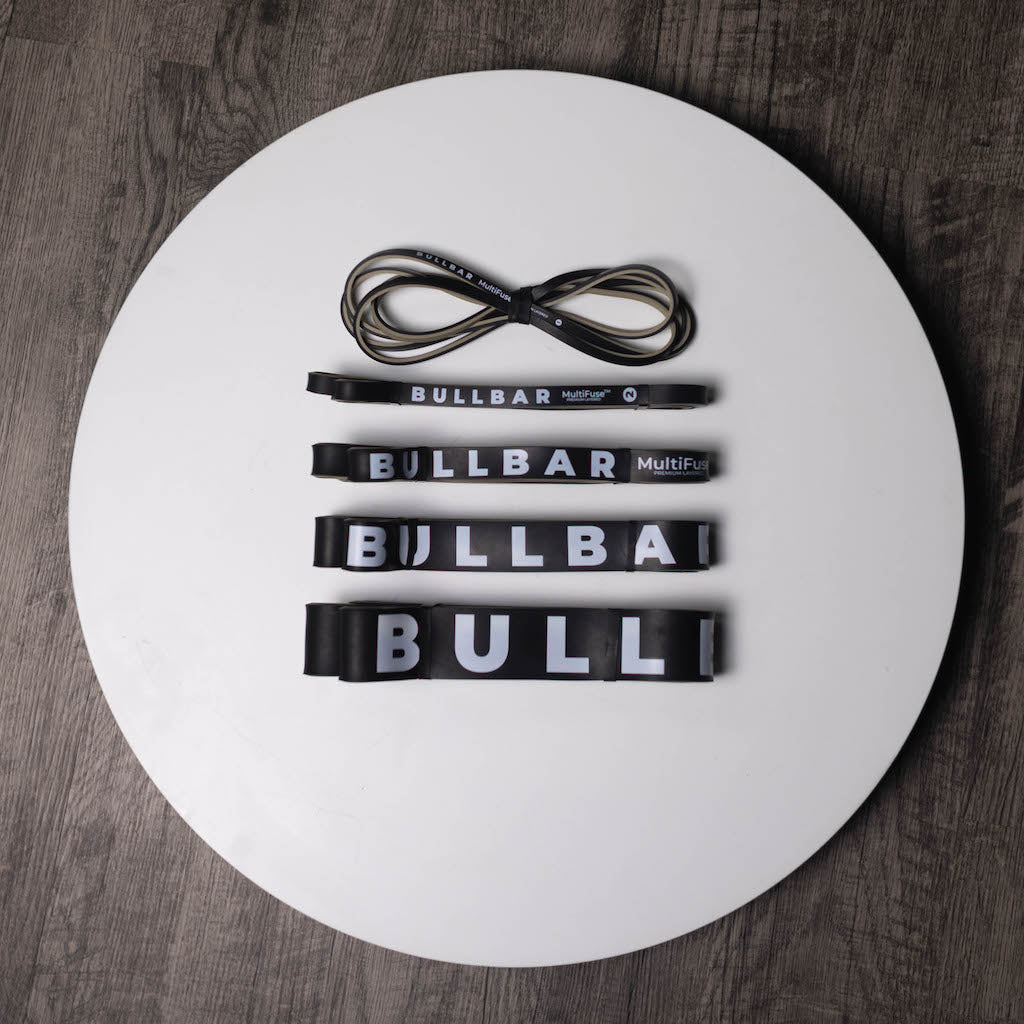 The BULLBAR Multifuse (TM) Resistance Band Set takes your workout to the next level—anytime, anywhere. These five premium bands range from light to extra heavy resistance, allowing you to scale your strength and mobility training with ease.